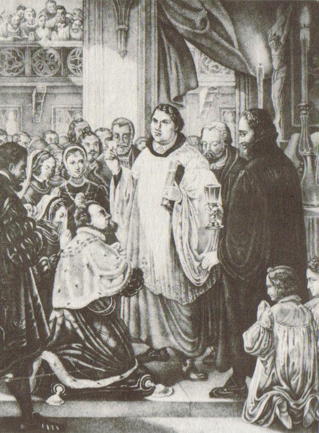Це був реформований король, котрий проголосив війну проти одежі до Причастя його Лютеранських підданих. Королівський дім Бранденбурзький, в Прусії, був реформованим тоді, коли населення, переважно було лютеранським. Війна проти одежі до Причастя була проголошена тим самим солдатом -- королем Фредеріком Вільгельмом І, який правив у надзвичайно аристократичний спосіб. Згідно рішення 1733 (зазначте дату) він заборонив ряси і одіж до причастя, свічки, латинські пісні, спів, та знак хреста.